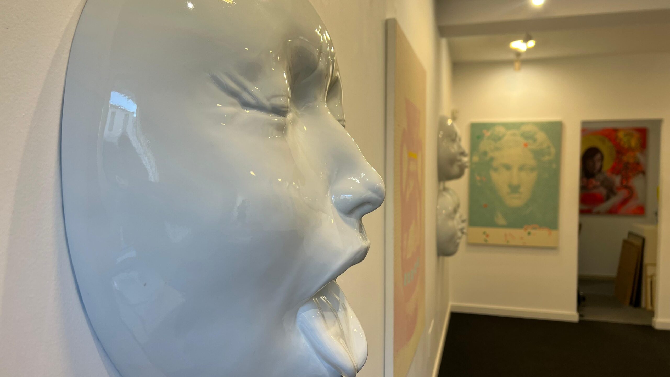 A peza do escaparate, decisión da directora da galería, convértese nunha porta á rúa: “Paréceme unha idea fantástica: sacar a arte á rúa”. O equilibrio entre referencias sacras e cultura popular nace da historia cultural española, onde o legado relixioso e a súa deriva museística conviven na experiencia contemporánea: “O meu traballo fala xustamente diso: da nosa relación coa parte espiritual”. O seu desexo ao rematar de ver a súa exposición é directo: “Encantaríame que cada persoa lle dixese á que ten ao lado: quérote”.