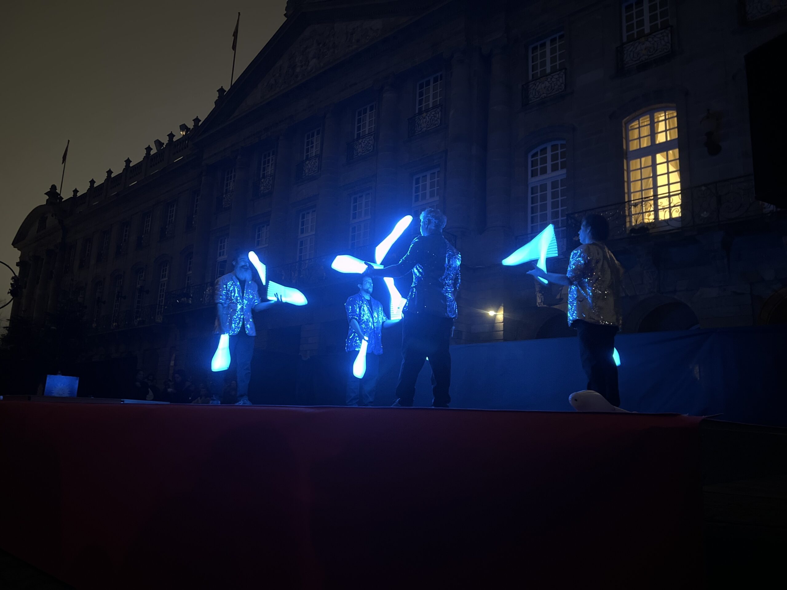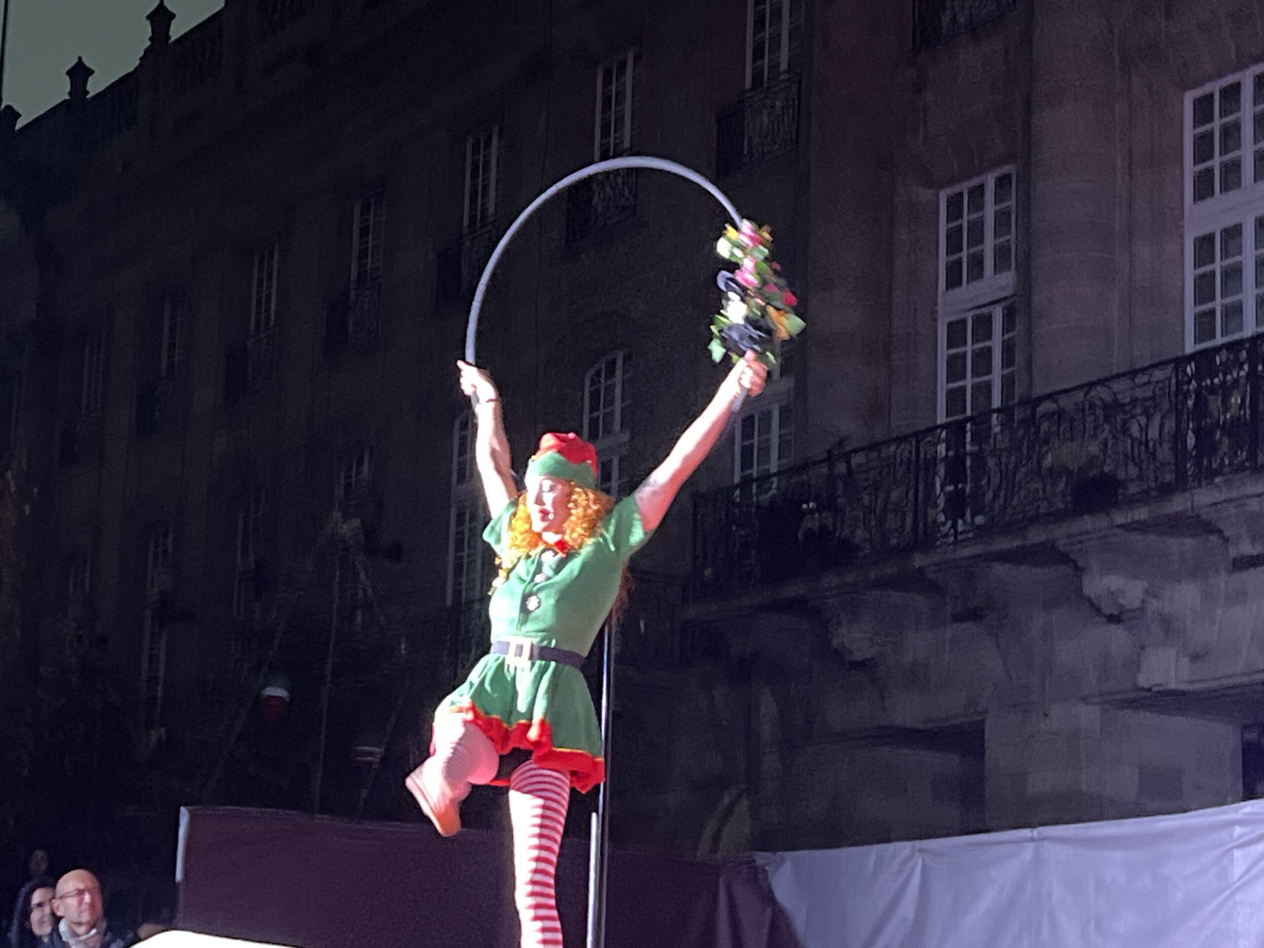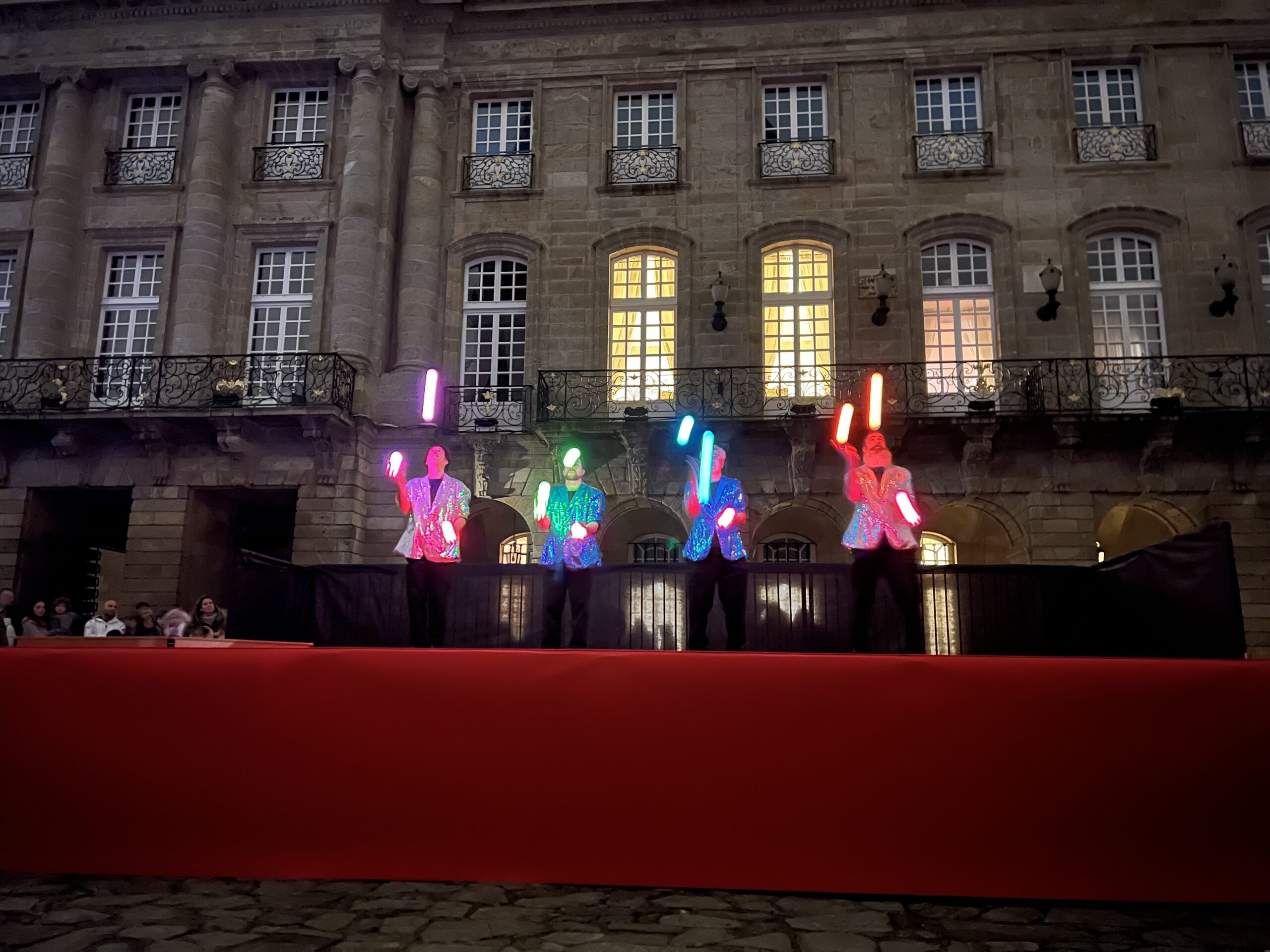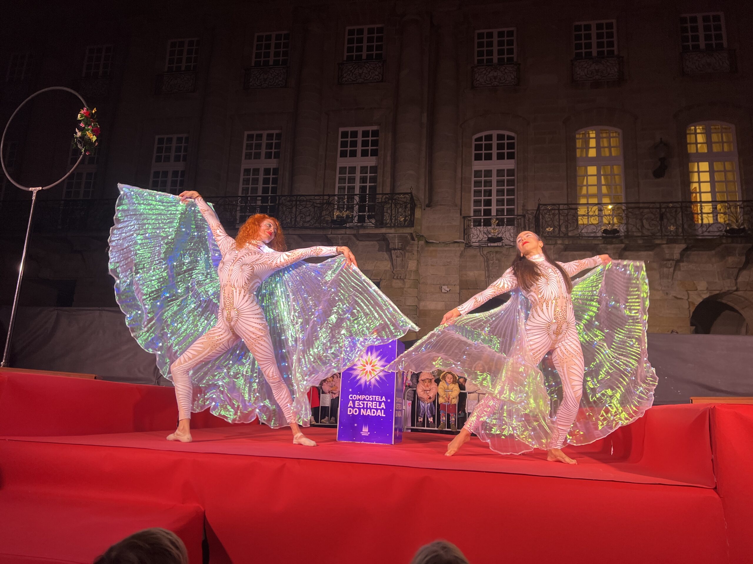 O acto concluíu cunha posta en escena de música, danza e acrobacia dende o balcón municipal, que puxo o broche final ao acendido. Para pechar a celebración, serviuse chocolate quente nos soportais de Raxoi, onde moitas familias aproveitaron para compartir o inicio oficial do Nadal na cidade.