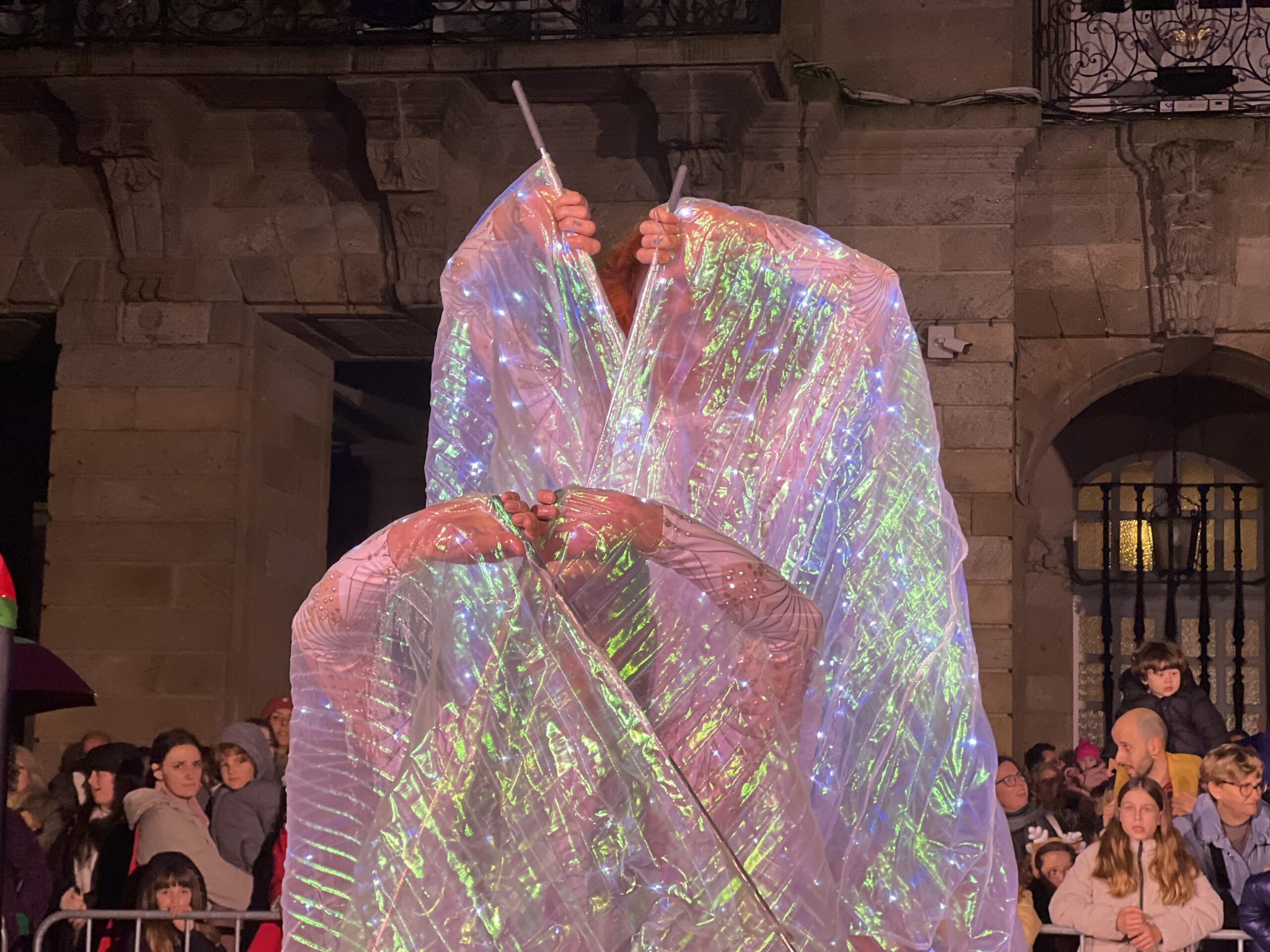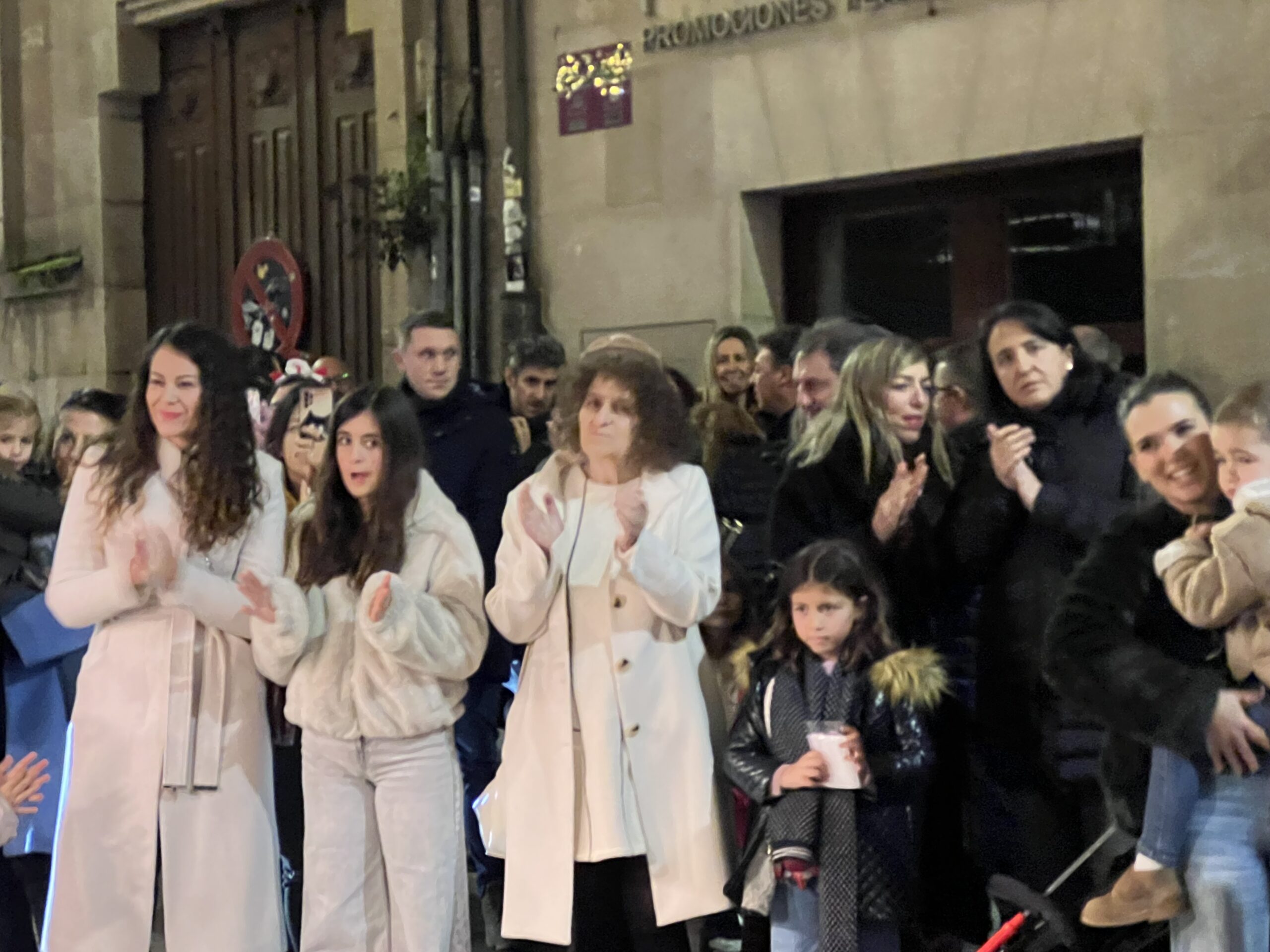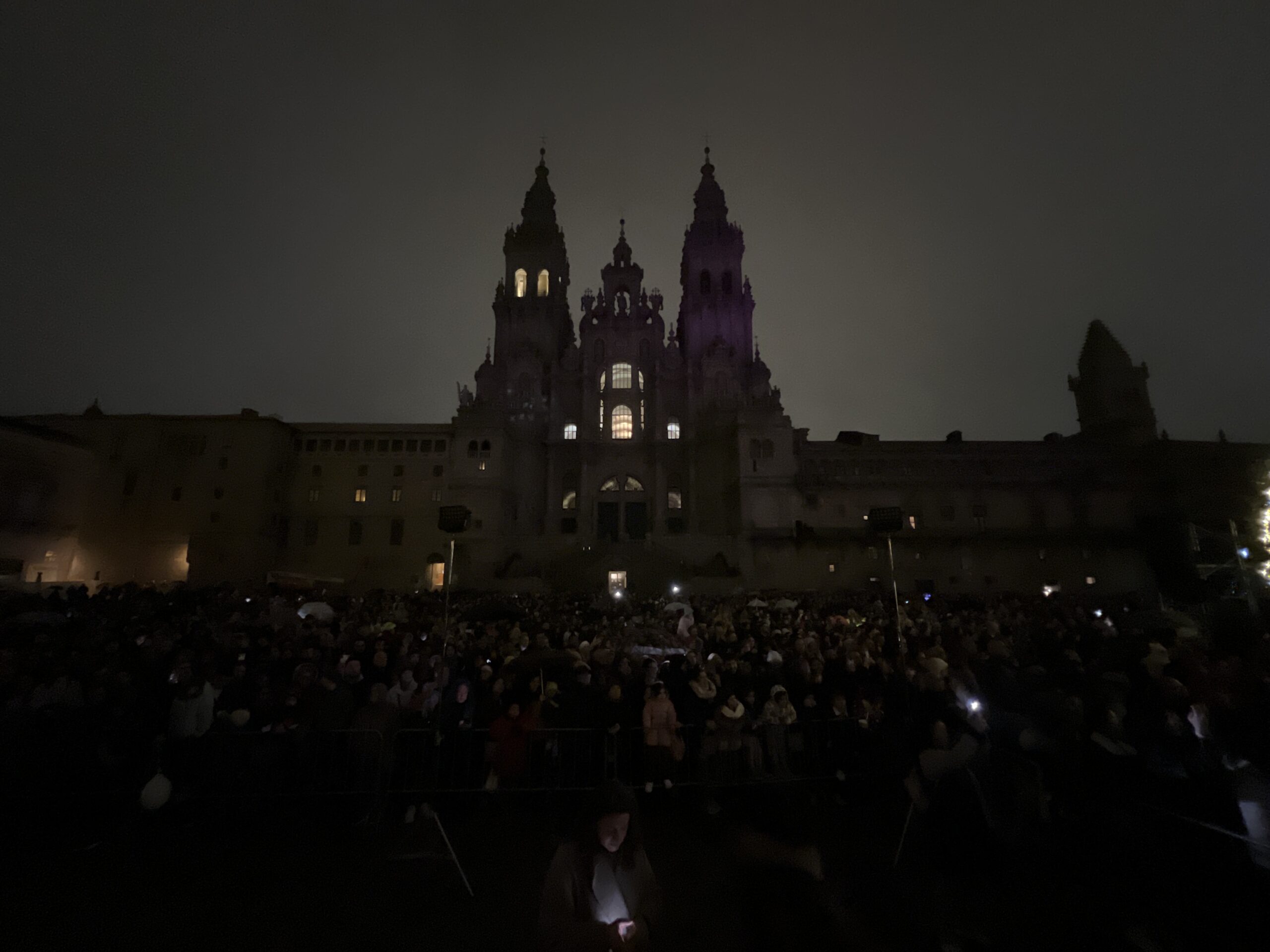 Ao longo do traxecto, a comitiva realizou as primeiras paradas de iluminación: primeiro no Toural, onde se produciu un dos momentos máis concorridos da tarde, e posteriormente na rúa do Vilar, antes de continuar cara a Praterías. O avance cara ao Obradoiro concentrou a maior parte do público, que seguiu o desfile ata a chegada arredor das 19:00.