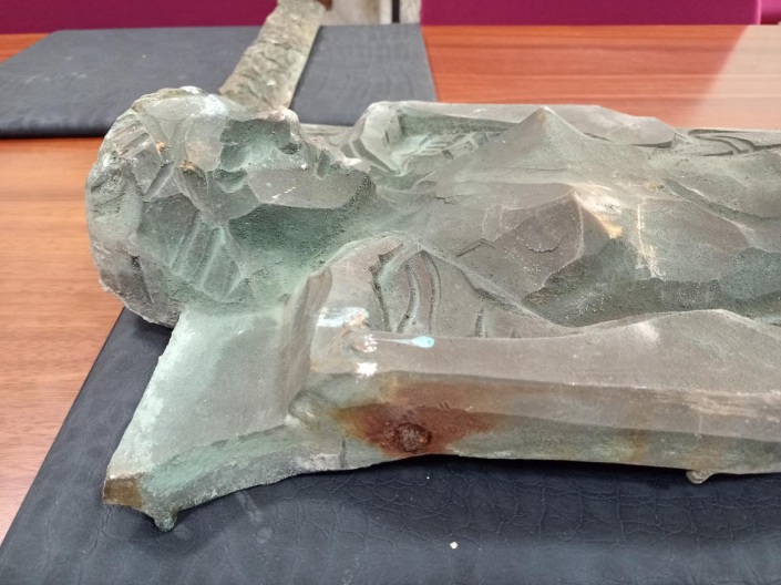 A escultura, da que só se conservan dúas pezas orixinais, será completada por unha especialista en restauración antes da súa futura colocación na zona de Pitelos