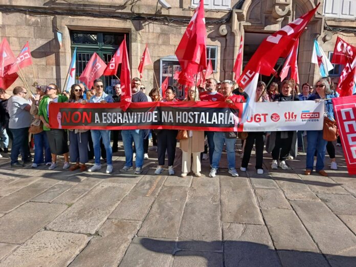 Sindicatos protestan en Compostela contra a precariedade na hostalaría e reclaman un convenio “digno”