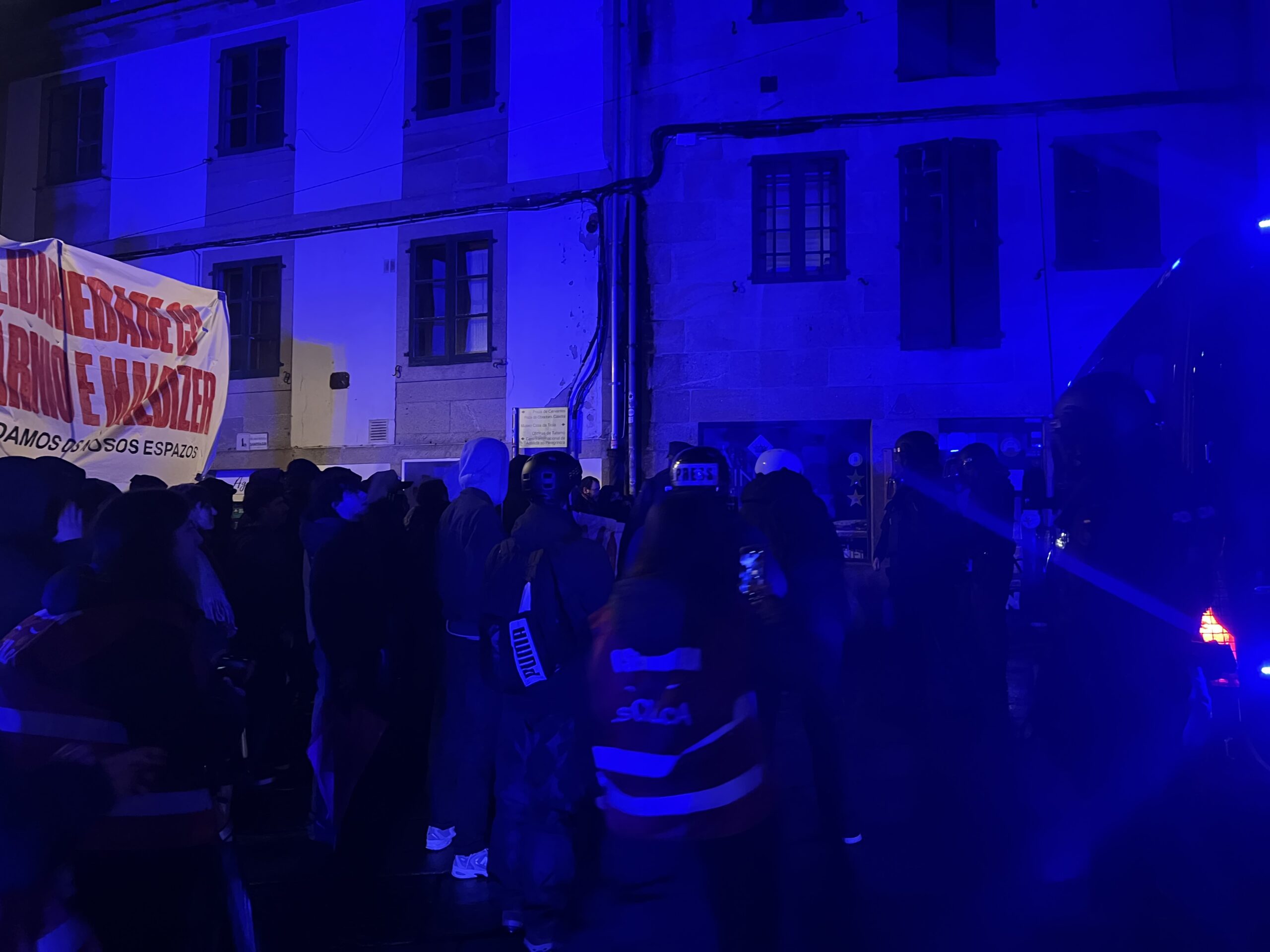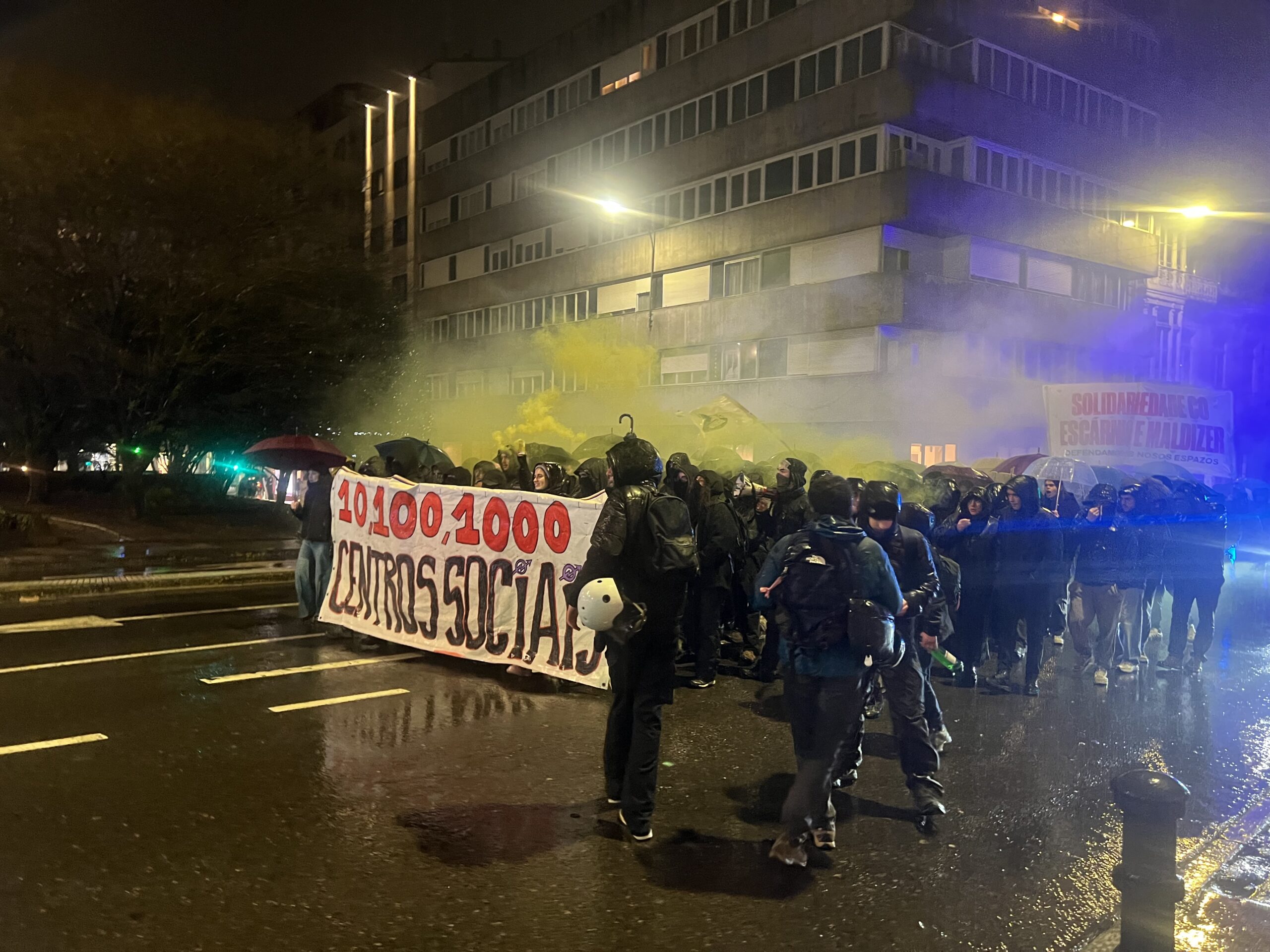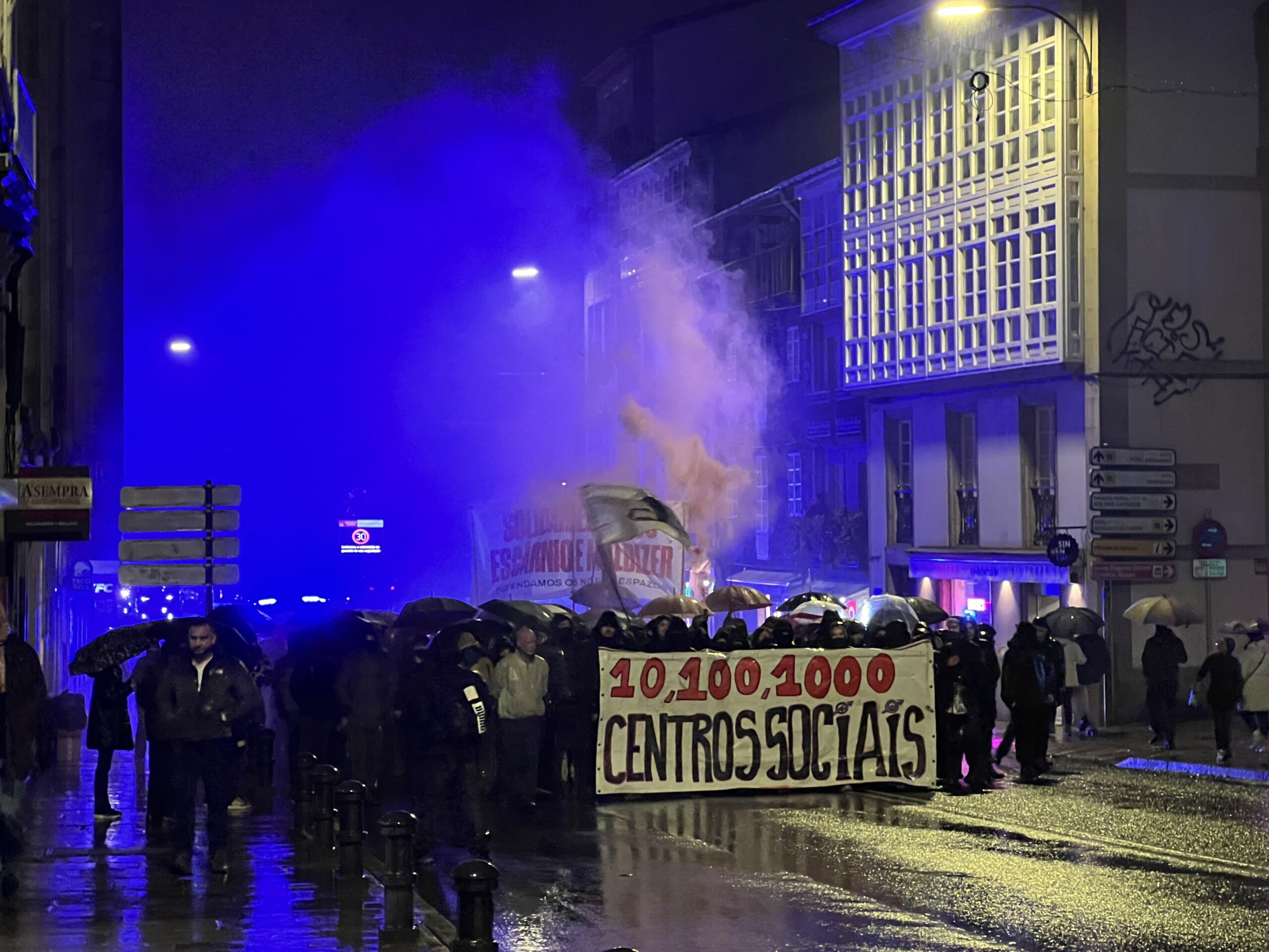 A protesta prolongouse durante máis de dúas horas e rematou sen cargas policiais nin detidos, malia varios momentos de tensión con petardos, fume e a queima dun contedor