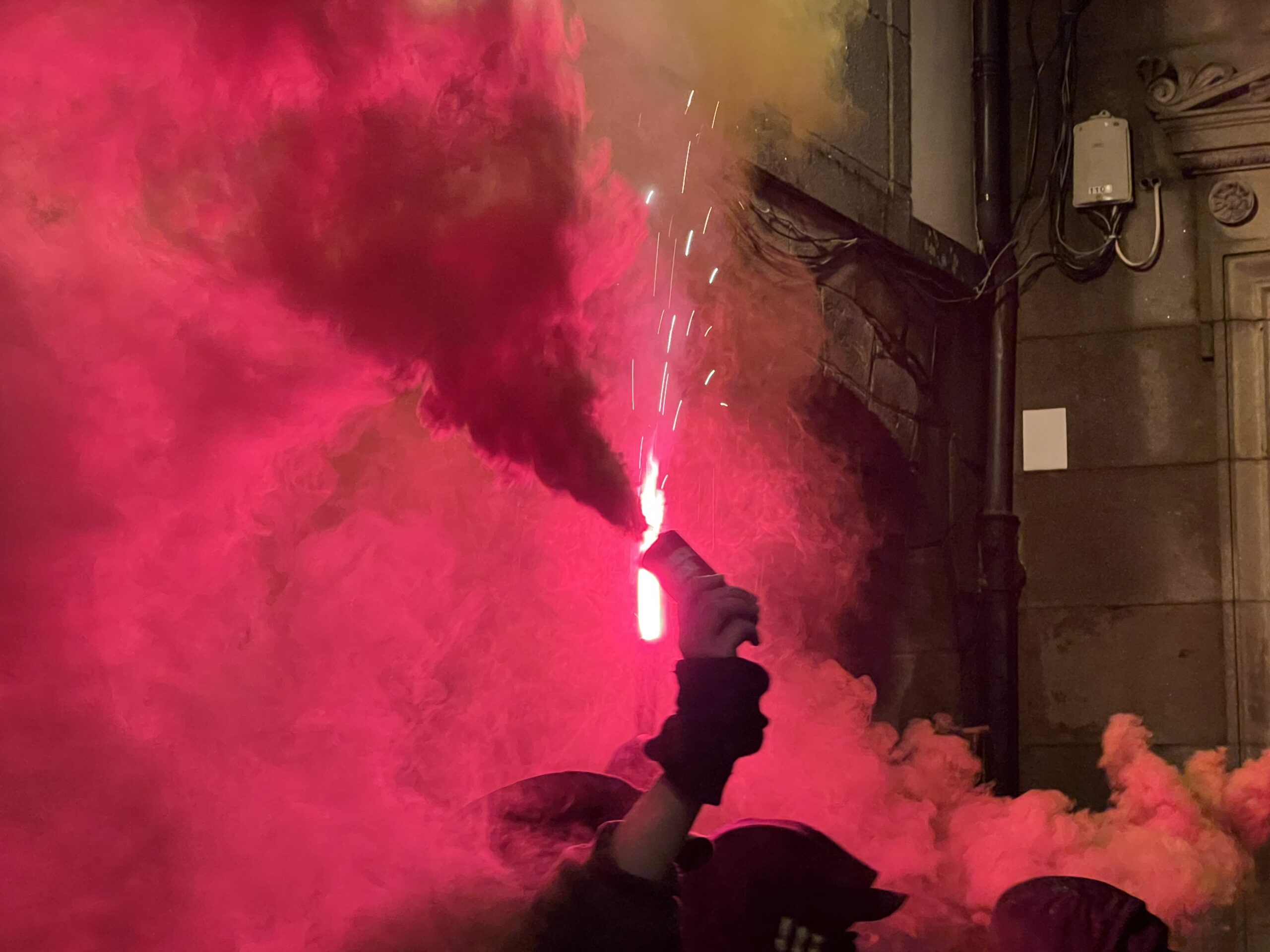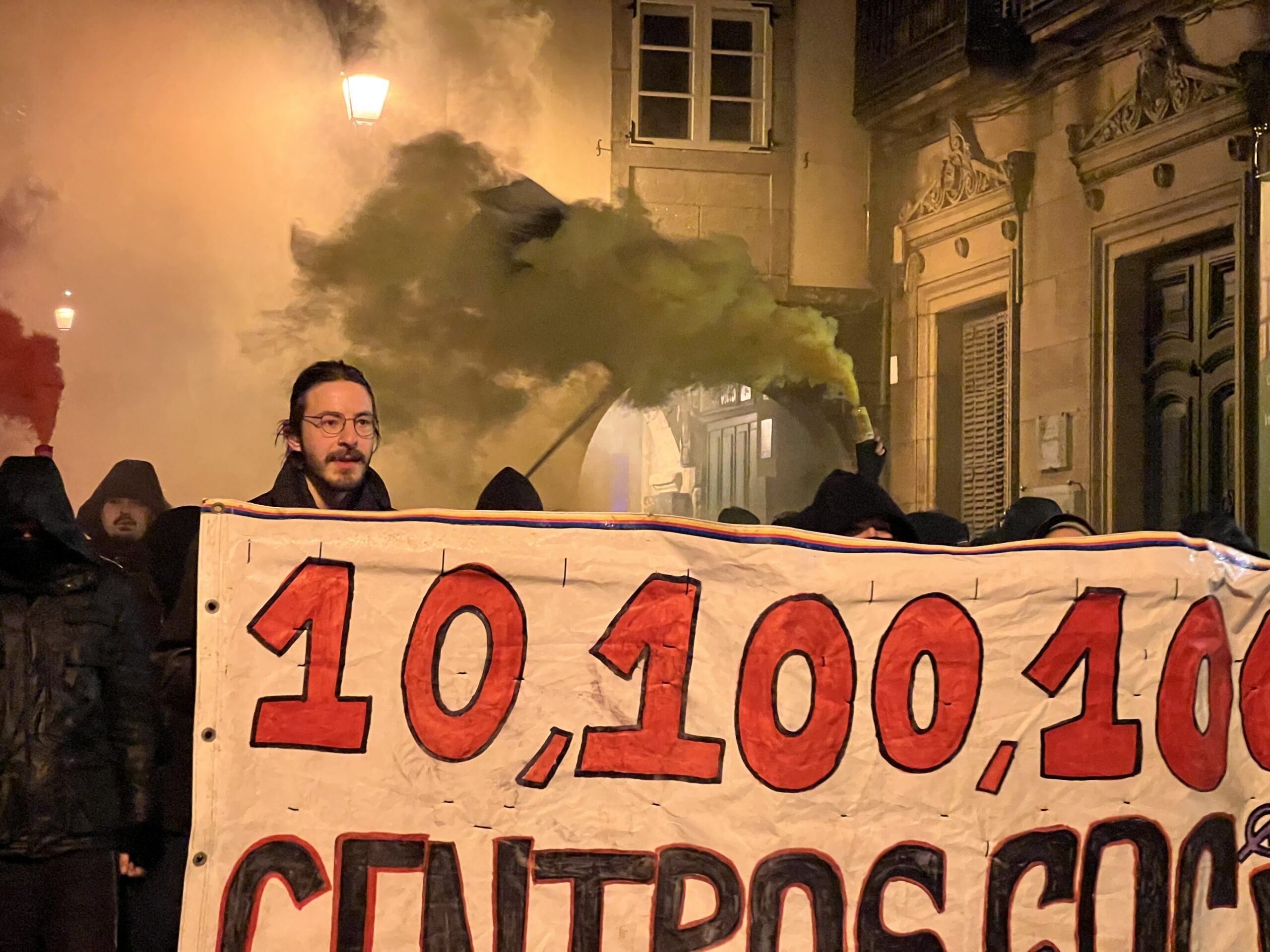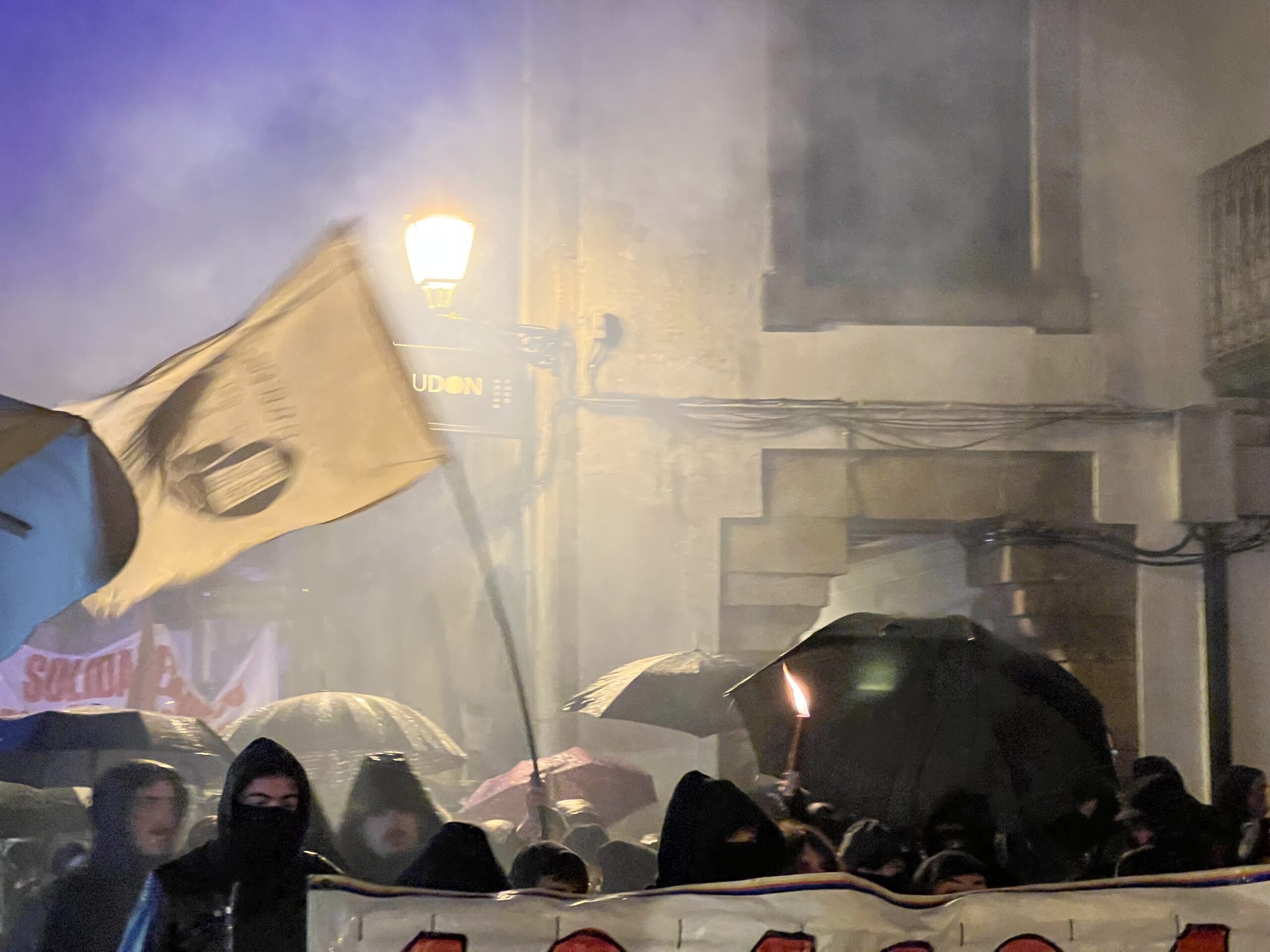 A protesta prolongouse durante máis de dúas horas e rematou sen cargas policiais nin detidos, malia varios momentos de tensión con petardos, fume e a queima dun contedor