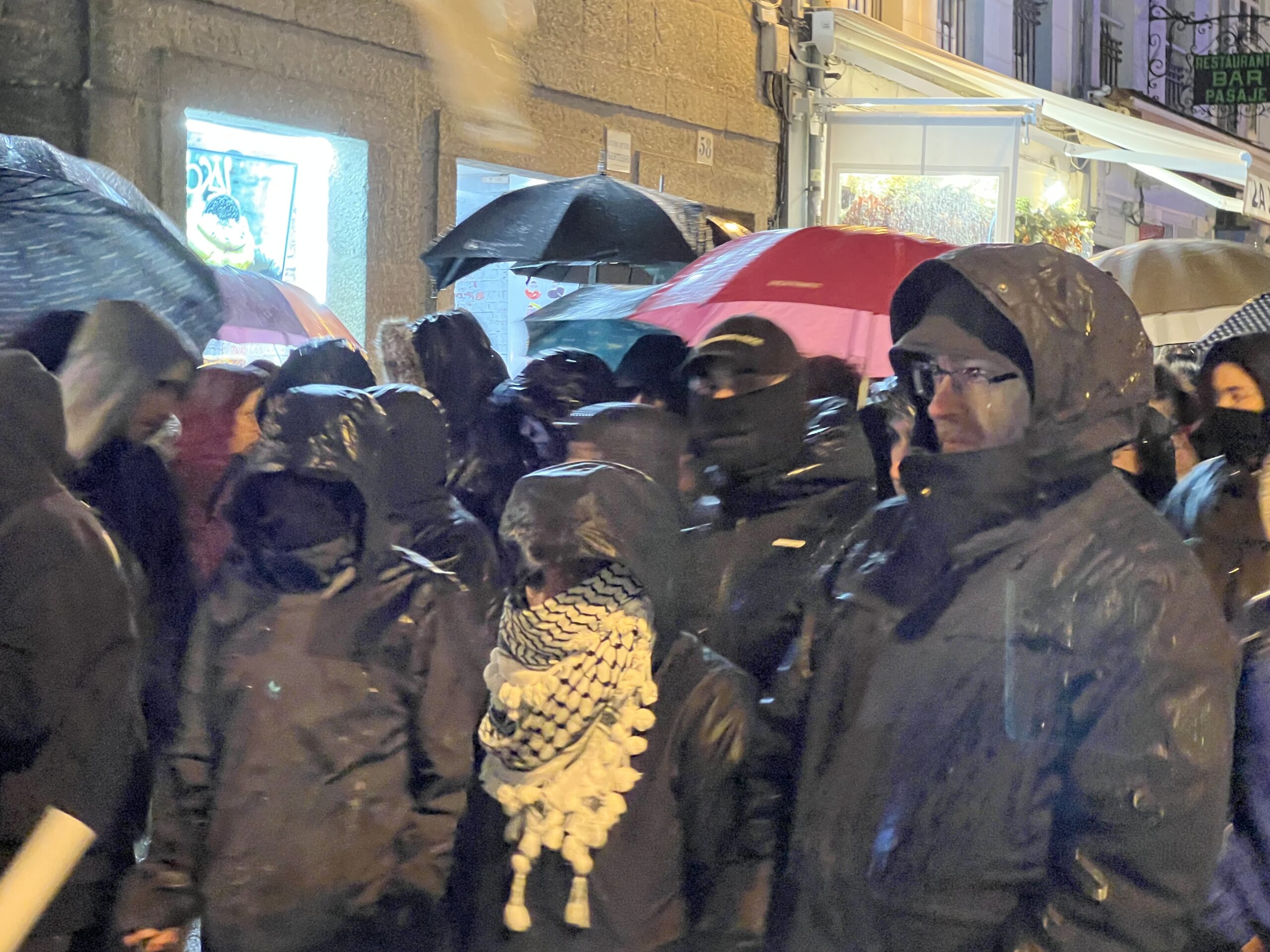 Dende a Praza de Cervantes, a marcha desprazouse até a Praza da Quintana para continuar pola rúa do Vilar, pasando fronte á Sala Yago, que fora tamén okupada no pasado, e dirixirse posteriormente cara a Porta Faxeira. Nese punto, o grupo, que nesta ocasión superaba o centenar de persoas, entrou na calzada, o que obrigou á Policía Nacional a realizar cortes improvisados do tráfico ao paso da manifestación.