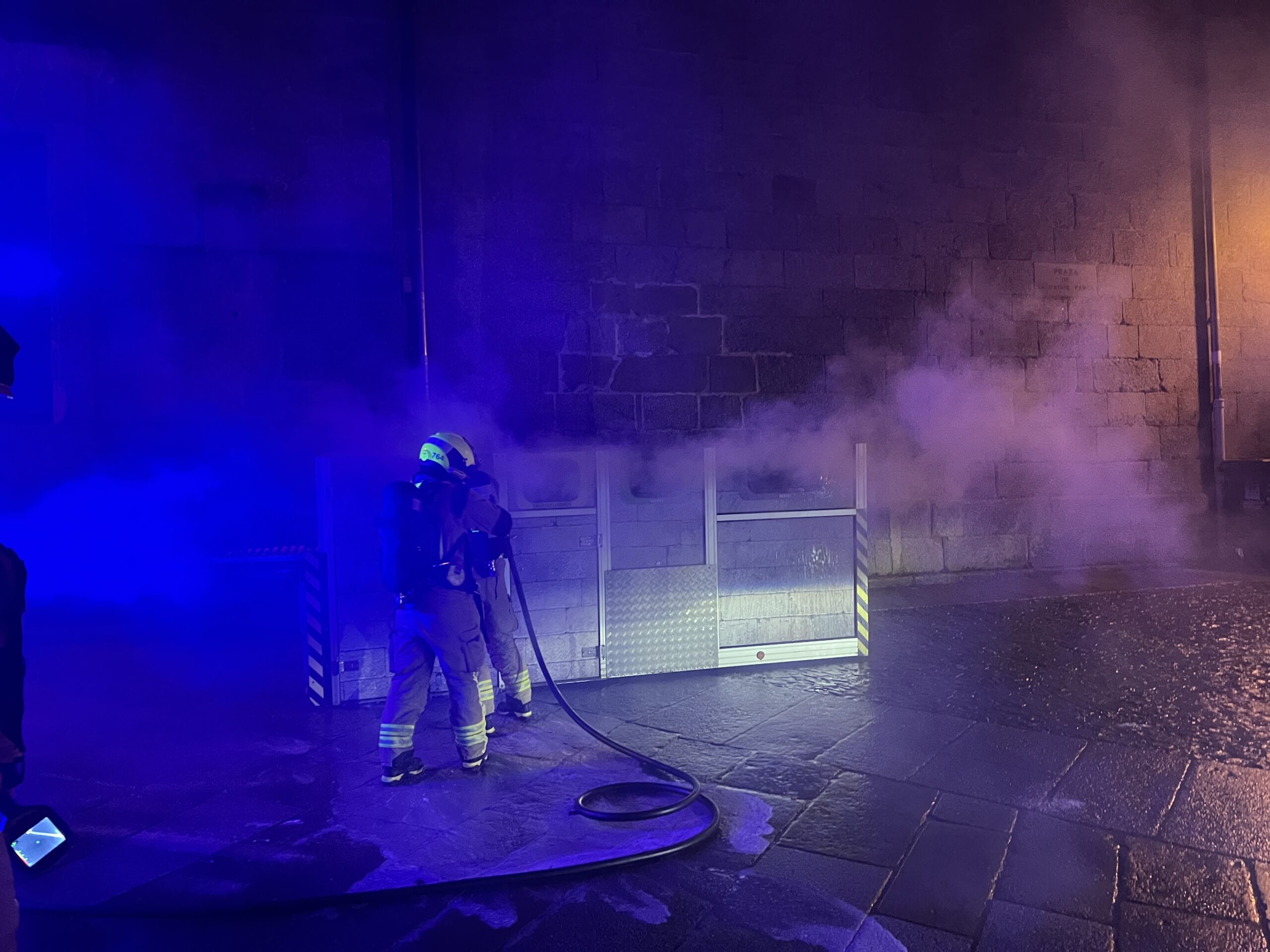 Durante o traxecto, un colector de lixo foi queimado na Praza de Salvador Parga, o que motivou a intervención dun equipo de bombeiros para sufocar o lume. Ao longo de toda a concentración rexistrouse tamén o lanzamento de petardos e bengalas de fume.