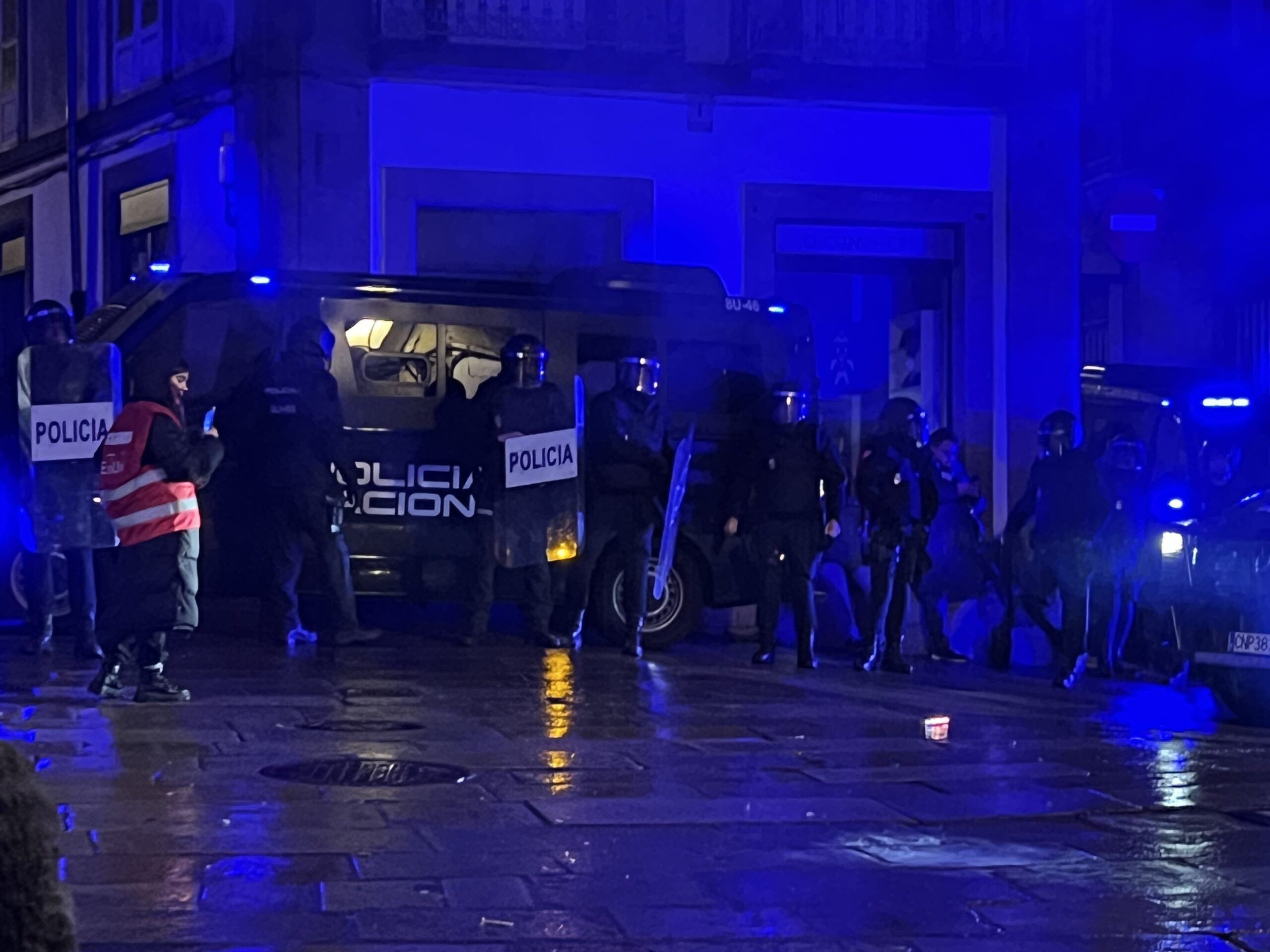 Neste tramo produciuse un dos momentos máis tensos da mobilización, coincidindo coa presenza de efectivos antidisturbios.