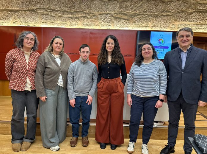 Na presentación participaron a concelleira de Dereitos e Servizos Sociais, Promoción Económica e Xuventude, María Rozas, a xerente de Chafarís, Cristina Neira Veiga, e o presidente de Down Compostela, Juan Martínez.