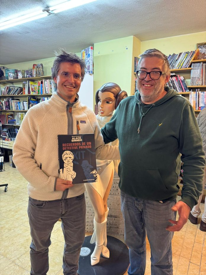 O líder do PP de Santiago visita o establecemento para agradecer ao seu responsable a traxectoria dun espazo vinculado á cultura do cómic na cidade