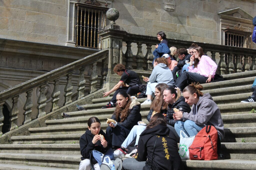 Arquivo – Varios turistas sentados nas escaleiras da Praza de Praterías – Xornal de Compostela