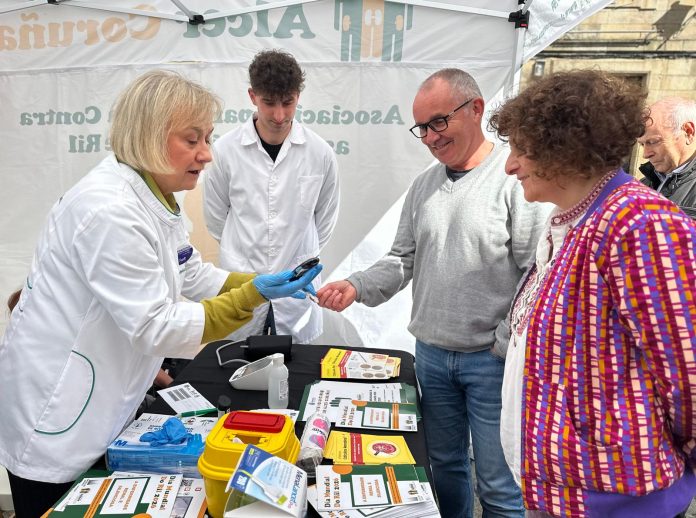 A Praza do Toural acolleu este xoves unha actividade de sensibilización promovida por Alcer Coruña co apoio da concellaría de Dereitos e Servizos Sociais co obxectivo de achegar á cidadanía información sobre a enfermidade renal crónica e insistir na relevancia da prevención temperá. A entidade situou no centro da campaña a necesidade de detectar a tempo unha doenza que define como unha “epidemia silenciosa” e que presenta unha taxa de infradiagnóstico superior ao 40%.